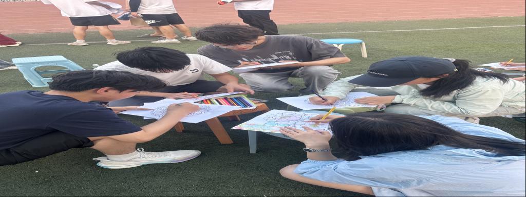 活动伊始,工作人员有序分发曼陀罗、卡通动漫等多样线稿与彩色铅笔,同学们依据内心喜好挑选,随后专注投入填色创作。笔触游走间,红色传递炽热勇气,蓝色晕染静谧思绪,色彩成为情绪的具象出口。在自愿分享阶段,来自不同专业的同学依次登台,国贸专业的同学讲述用暖黄填充图案,是想诠释备考时咬牙坚持的希望;外语专业同学借靛蓝线条,袒露独处时与自我对话的哲思。而在双人协作区域,搭档们配合默契,一人勾勒轮廓,一人填充色彩,画笔传递间,不仅完成作品,更消融了人际隔阂,让陌生同学也能借创作拉近距离 。活动前期,学院构建“班级 + 线上 + 班委”宣传网,班级群发放活动材料详解流程,QQ 群推送往届精彩、色彩疗愈案例营造期待,各班班长在班会积极动员,多管齐下让活动广为人知,现场既有同学独处专注创作的沉静,也有交流分享时的欢声笑语,氛围热烈且治愈。