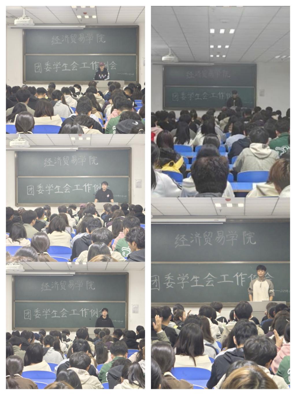 为明确新学期学生会工作方向,进一步提升组织凝聚力与执行力,确保各项工作顺利进行,10月12日晚,经济贸易学院于9A104召开团委学生会工作例会。经济贸易学院学生会主席张子健、轮值主席陶金涛、宋飞、团委副书记郜艺轩、岳昊洋及全体学生会成员参会。