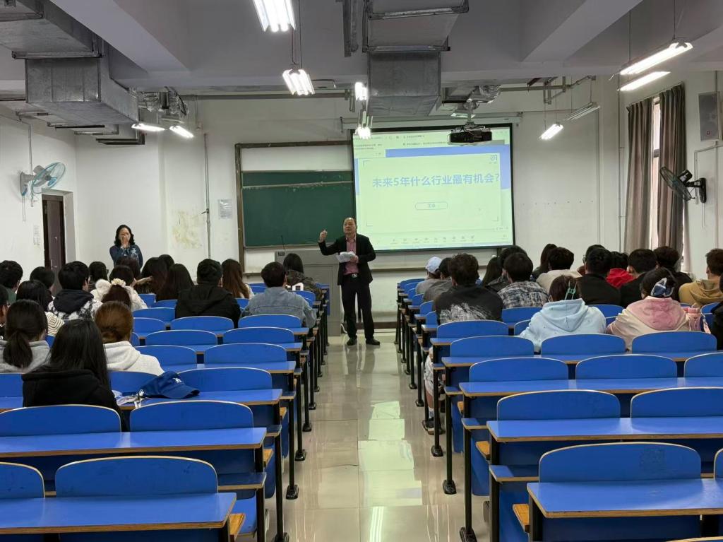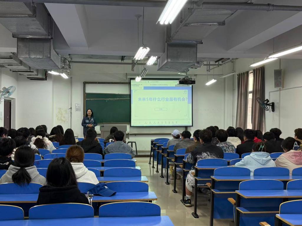 为了使毕业生对当前电子商务领域创业就业形势有深入的了解。2025年10月15日下午,经济贸易学院邀请东莞在一起电子商务有限公司人事部王会经理为2026届毕业生作了“跨境电商创业就业趋势”报告会,2026届毕业生约50名同学到场,国际经济与贸易系系主任郭松珍老师参加,报告会由院党委副书记李二亮主持。