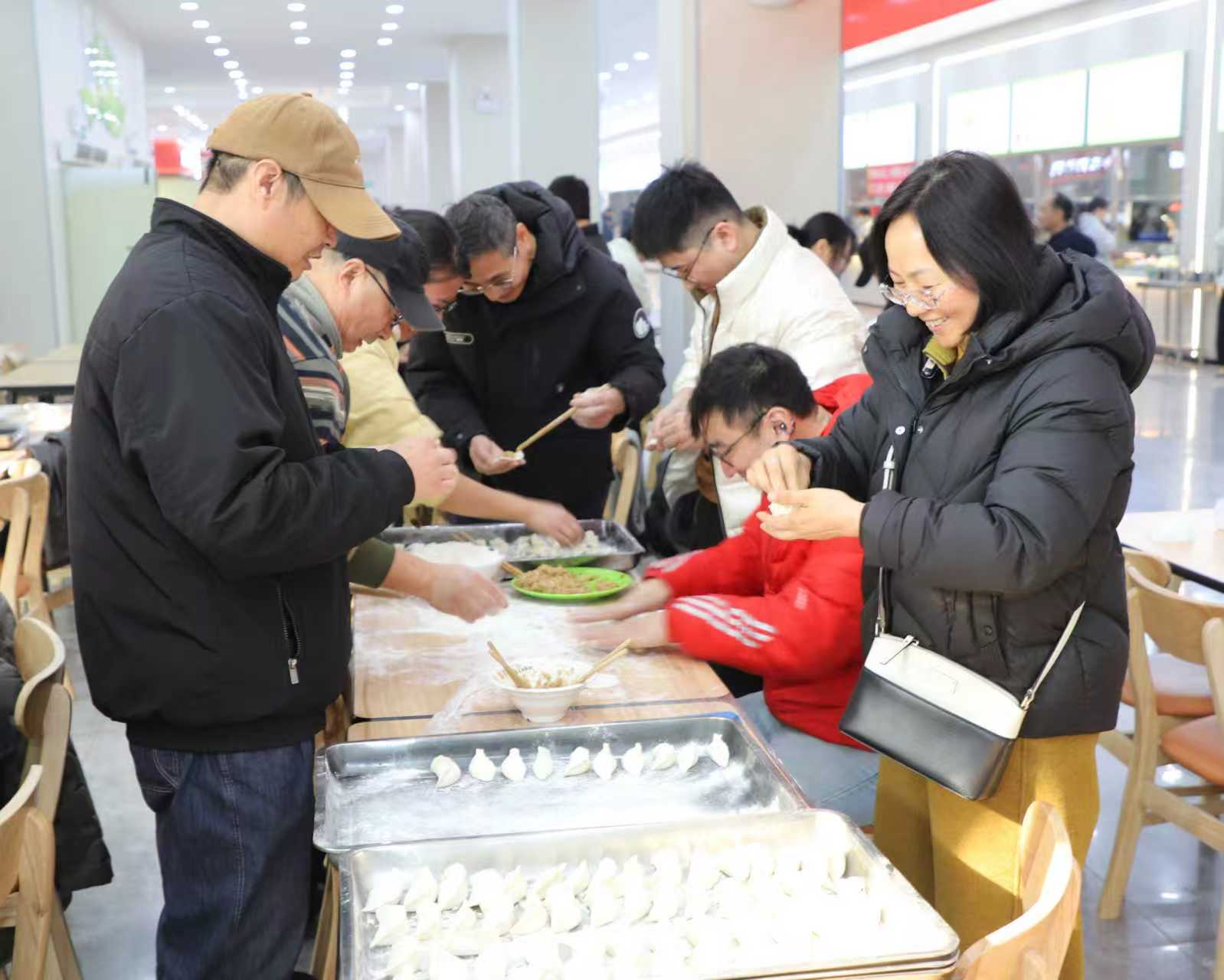 活动现场,气氛温馨热烈。大家迅速投入到包饺子的“创作”中。揉面、擀皮、调馅、包捏,动作由生疏到娴熟,各式各样的饺子在巧手中诞生,有的圆润饱满,有的精致美观,展现了南北不同的地域风格与生活趣味。过程中,大家一边交流包饺子的技巧与家乡的冬至习俗,一边分享工作中的心得与生活中的乐事,餐厅内笑语不断,其乐融融。平日里忙于管理服务与教学科研工作的老师们,此刻在协作劳动中拉近了距离,加深了了解,情谊在指尖传递,温暖在心间流淌。