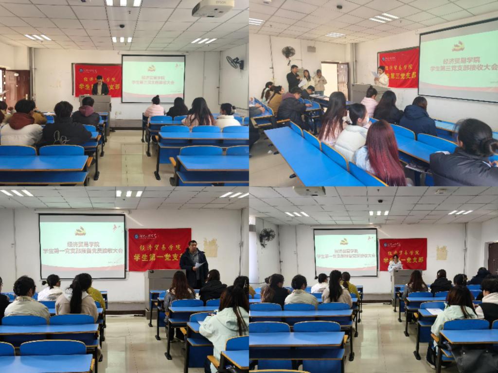 为推进基层党组织建设,规范党员发展工作。12月10日中午,经济贸易学院第34期预备党员接收大会在三个分会场同步启幕。其中第一支部于9A402-403教室、第三支部于9A404-405教室、第四支部于9A406教室同时开展,以规范严谨的程序推进党员发展工作。