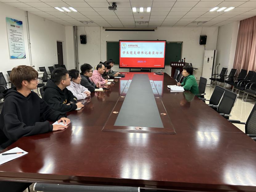 为深入学习贯彻党的二十届四中全会精神,切实提升学生党支部书记、委员的政治素养与业务能力,规范发展党员工作流程,11月10日下午,经济贸易学院在学院会议室召开学生党支部书记、委员专题培训会。全体学生党支部书记及委员参加会议,院党委书记赵方出席并进行了主讲培训,会议由院党委副书记李二亮主持。