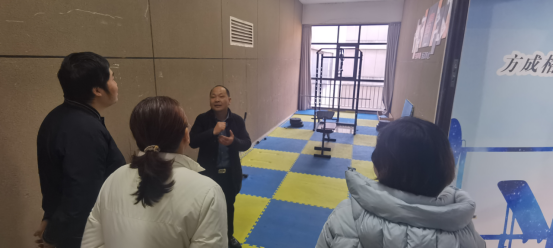 在学院分工会主席李二亮的讲解下,王晨等先后参观了学院特色工会活动阵地——“计然书社”与“经贸阅动空间”健身房。在“计然书社”,王晨等仔细询问了书社的日常运行、图书管理及活动开展情况,听取了关于读书分享会、文化沙龙等特色活动的介绍。他对学院工会结合学科背景打造书香阵地、丰富教职工精神文化生活的创新举措表示肯定,并指出建设学习型工会、提升教职工综合素养是新时代工会工作的重要方向。在“经贸阅动空间”健身房,王晨等查看了健身设施的配备情况,详细了解了健身房的开放管理、使用效率及安全维护等措施。他强调关注教职工身心健康、营造积极向上的工作氛围,是工会组织的重要职责,他对经济贸易学院分工会在有限条件下主动作为、务实服务教职工的做法给予高度评价。
