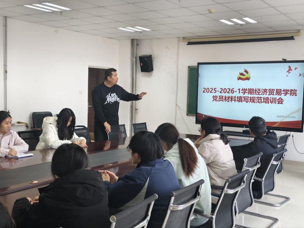 为进一步规范党务部的工作,提升党员材料填写的规范性与准确性,12月10日下午,经济贸易学院于9B317会议室召开党务部全体成员工作专题会议,围绕党员发展及材料填写重点问题展开深入研讨。此次会议由23级辅导员、学生第一党支部支部书记丁雪龙主讲,所有党务部人员参加。