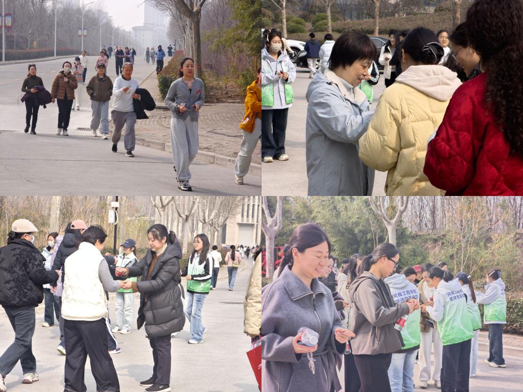 为庆祝“三八” 国际妇女节,进一步丰富女教职工课余文化生活,河南工程学院校工会于2026年3月11日下午在校园举办第十三届“庆三八”女教职工健步走活动,经济贸易学院组织志愿者提供全方位服务,助力活动圆满举行。